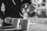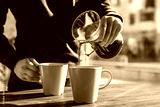The coffee is alternatively made using a paper filter and a kemex is poured from the flask into a mug. Third wave cafe