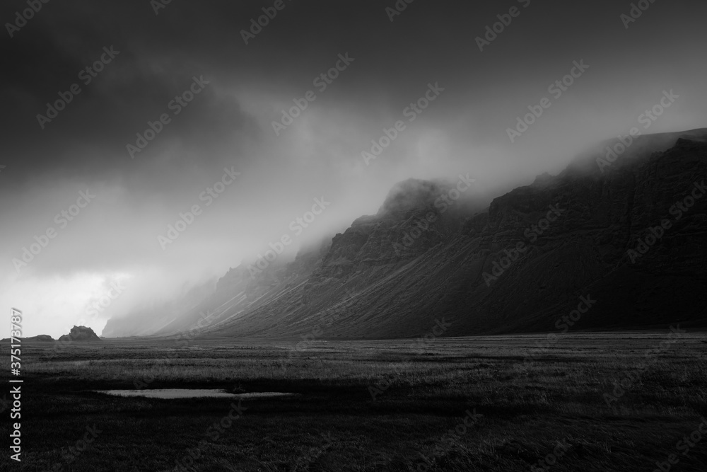 Iceland beautiful nature dramatic landscape. Black and white toned
