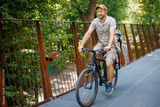 father with son riding on bike