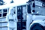 Teacher at school in front of the bus