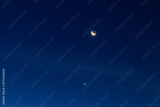 Crescent moon and stars in dark blue sky