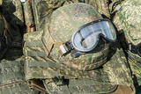 military ammunition and combat equipment of a soldier. Helmet and bulletproof vests and other military equipment