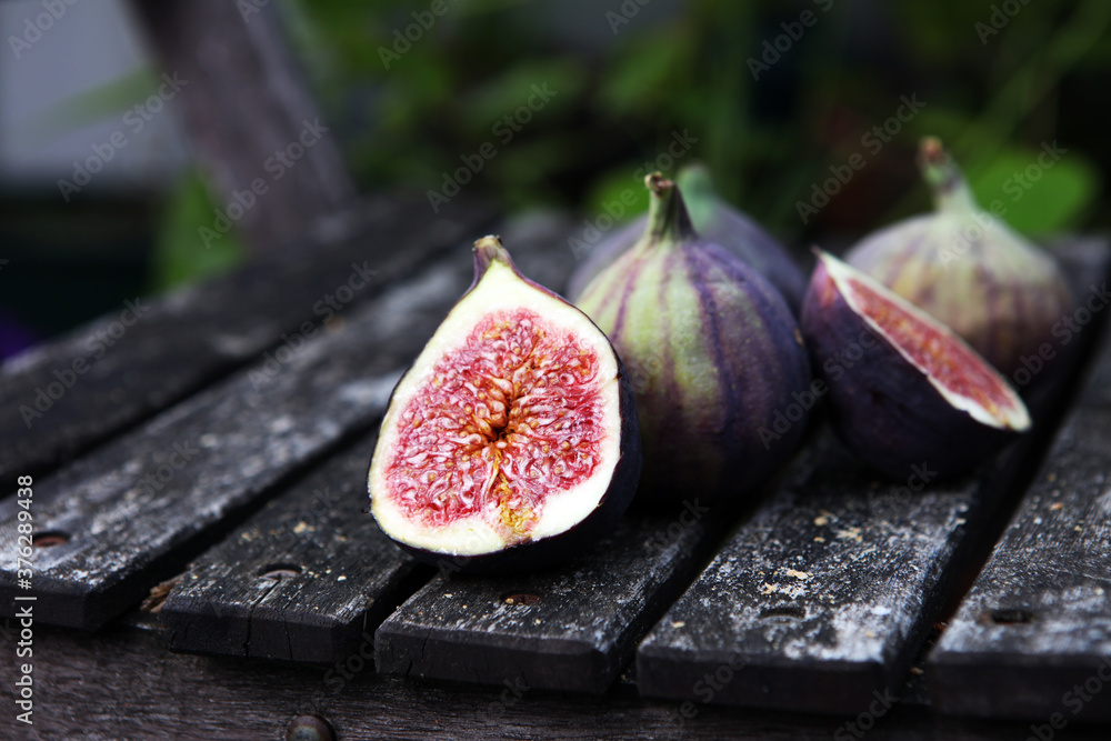 Fresh figs. Food Photo. whole and sliced figs on rustic background.
