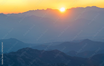 Sunrise over the Cursed Mountains "Prokletije" seen from the Lovcen National Park, Montenegro