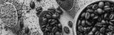 top view of ground, instant coffee and beans in spoons near wooden bowl on beige surface, panoramic shot