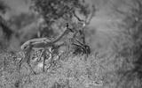 Female gerenuk, much smaller than the male, stays near her mate in Kenya
