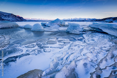 Various ice formations in Jokulsarlon Glacier lagoon in Iceland