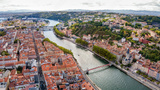 Lyon France panoramic aerial view, city panorama, beautiful cityscape from above