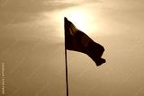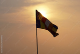 Buddhist flag flying in the sun