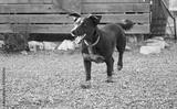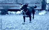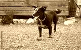 A closeup of a black Majorca Shepherd Dog walking in a park at daytime