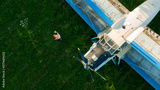 beautiful happy couple in love standing near the old planes hugging
