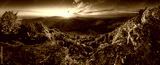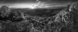 Panoramic view of idyllic mountain scenery in the Carpathian with fresh green forest in springtime.