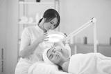 Relaxed young woman enjoying professional skincare procedures in modern beauty salon