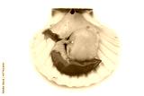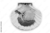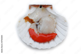 Fresh shell scallop isolated on white. Pecten jacobaeus