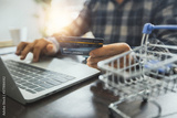 shopping online, shop and pay by credit card, business man