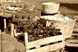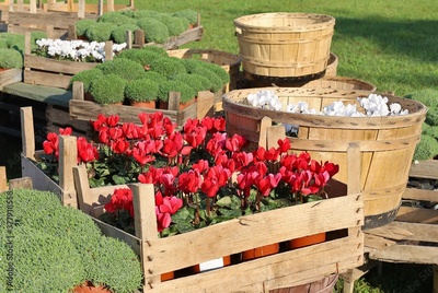 Wooden crates full of cyclamens, on sell by the rural floral market