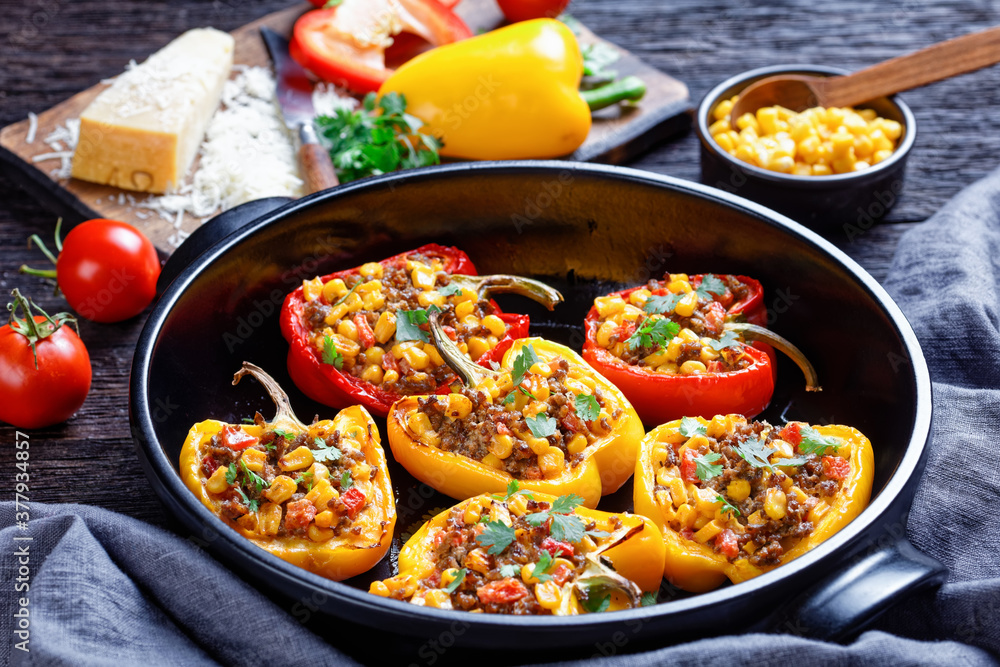 stuffed bell peppers with ground beef, corn
