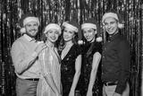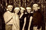 celebration, people and holiday concept - happy friends in santa hats at christmas party
