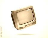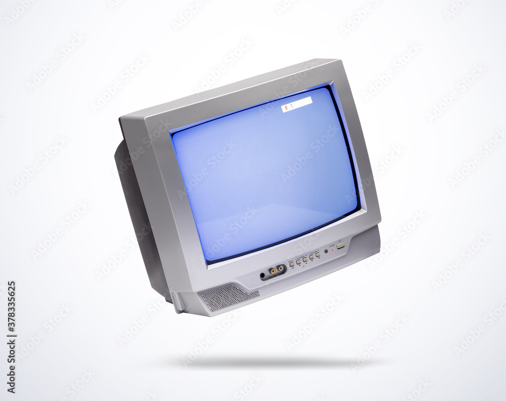 Working old gray CRT TV set in air, on light background. File contains a path to isolation.