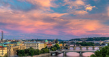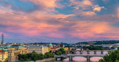 Panorama of Prague, the capital of the Czech Republic in the light of the setting sun