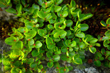 Salix herbacea, dwarf snowbed willow smallest tree in the Europe, Jeseniky, Czech Republic. Small tree in the rock habitat.