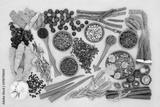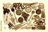 Adaptogen herb & spice health food selection. Natural plant based foods that helps the body deal with stress and promote or restore normal physiological functions. Flat lay on mottled yellow.