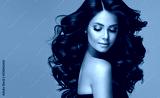 Beauty brunette girl with long and shiny wavy black hair . Beautiful woman model with curly hairstyle .