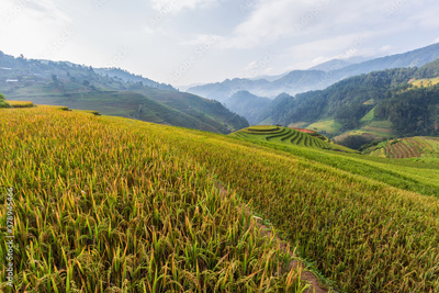 Terraced rice paddy field landscape of Mu Cang Chai, Yenbai, Northern Vietnam