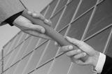 Businessman passing a red baton to another businessman