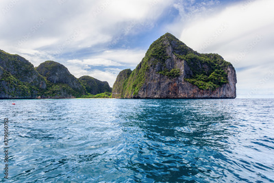 Beautiful tropical island bay at Maya Bay on Phi Phi Leh Island in sunshine day, Krabi Province, Thailand