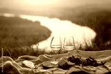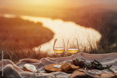 Relaxing romantic holiday concept with beautiful view of river, coast and beautiful sunset.