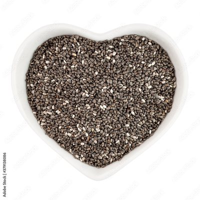 chia seeds in heart shaped plate