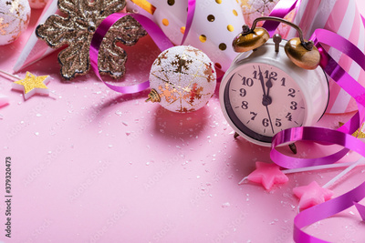 card with christmas decoration in pink background