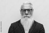 Close up of hipster senior bearded man - Mature fashion and elderly lifestyle concept - Focus on nose, mouth, glasses
