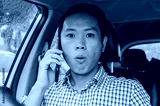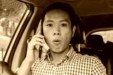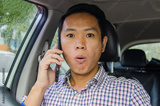 Shocked man talking on the phone in the car