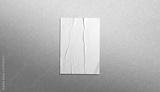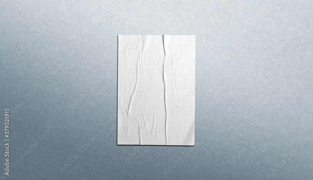 white paper wrinkled poster template , blank glued creased paper sheet mockup.