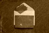 A postal set of handmade envelopes and sheets of paper lie on a gray surface. Paper recycling and zero waste concept.