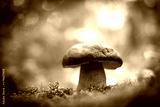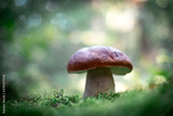 Big white mushroom porcini in autumn forest. Nature landscape photography