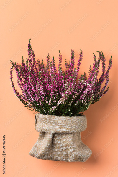 Autumn fall thanksgiving day composition with heather, Erica flower