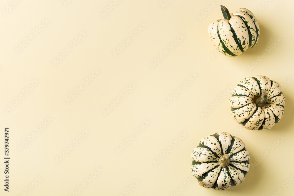 Autumn fall thanksgiving day composition with decorative orange pumpkins