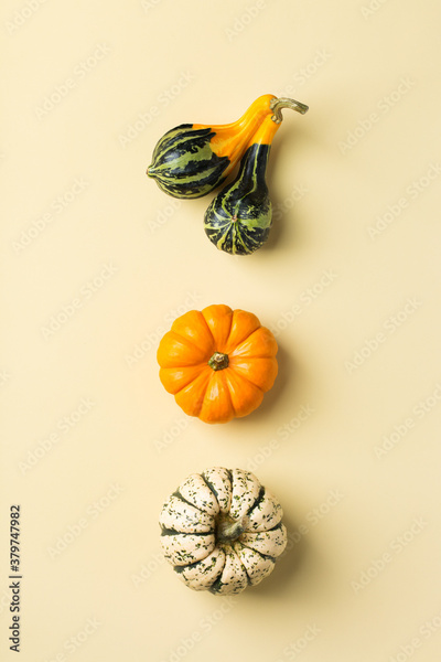 Autumn fall thanksgiving day composition with decorative orange pumpkins