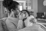 Lovely mother embracing daughter making inhalation with a nebulizer
