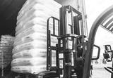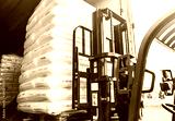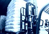 Close up Forklift loader for warehouse works outdoors with risen forks