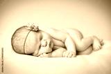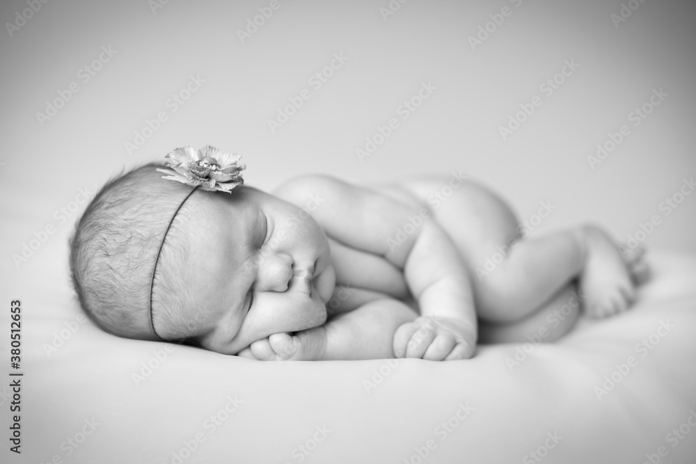 Newborn Baby Girl Sleeping Peacefully, Wearing Flower Headband