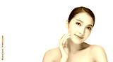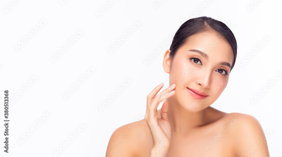 Attractive young woman has beauty facial skin. Portrait charming beautiful young asia female. Pretty girl touching her face, Glamour lady get happy with isolated on white background, copy space