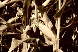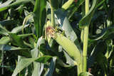 Damaged ear of corn in field. Zea mays or maize ear damaged by bird feeding