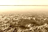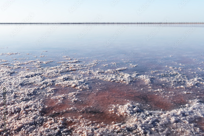 Salt crystals in pink water salt lake in Ukraine, Europe. Landscape photography