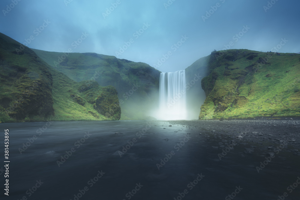Skogafoss waterfall, summer time, Iceland