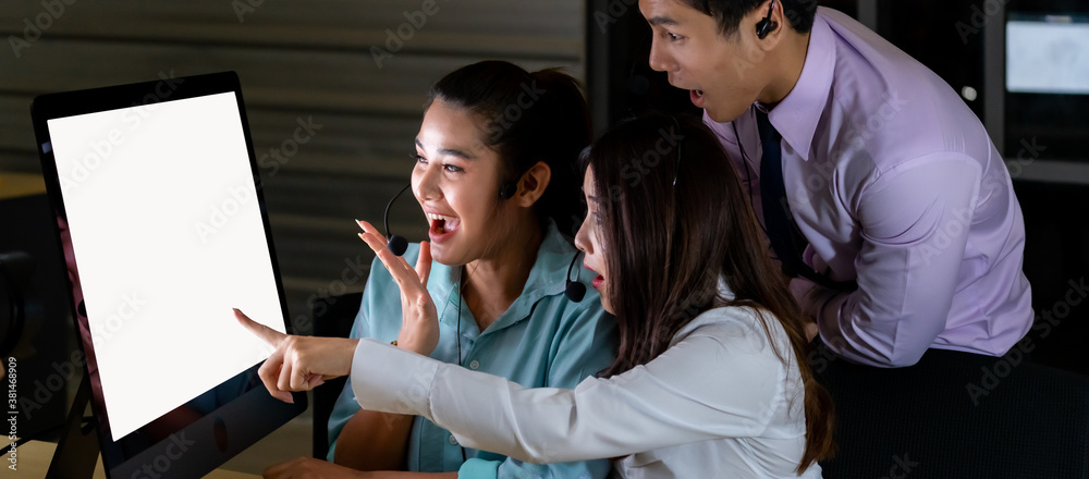 Call center team night working panorama