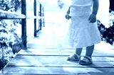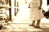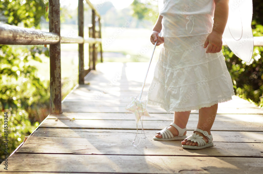 Magical Little Fairy Girl Standing with Magic Wand on Bridge